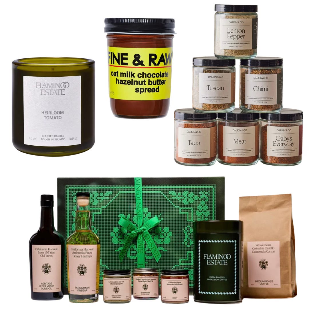 Flamingo Estate Essentials set: Beautifully-packaged and feels so luxurious, this set comes with whole bean coffee (in a canister, not a bag!), olive oil, vinegar, honey, chile crisp and seasoning