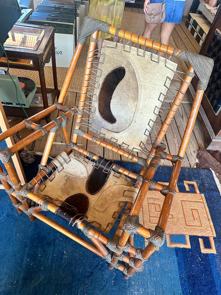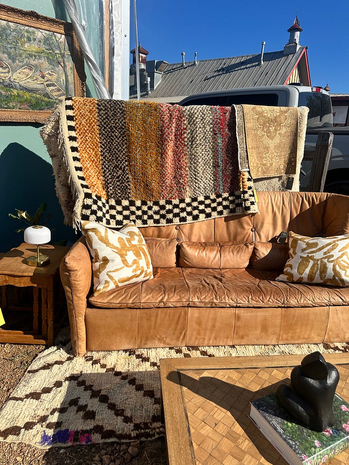 Round Top is very spread out, with venues cropping up down 11 miles of scenic Texas highway. Everyone has their favorites — there are the fields, where you can generally find better deals (though many of the high end vendors get here early and buy merchandise for themselves); Blue Hills, where you’ll find everything from vintage apparel and signs to furniture; The Compound, which is known for more heirloom-quality furniture; The Halles, where baby blue G-wagons pull up to get custom $1,200 hats… the list goes on.