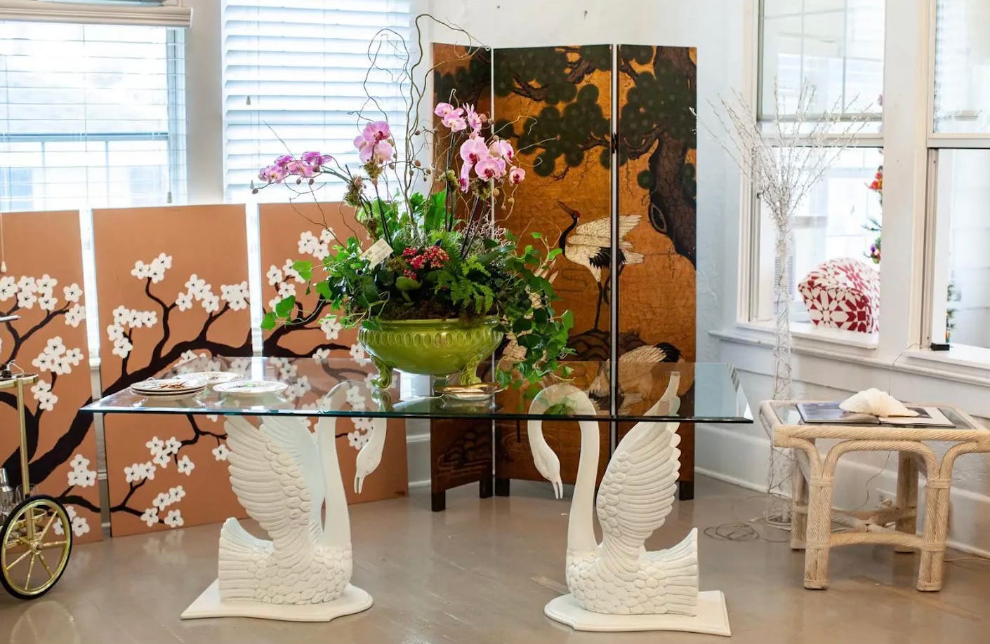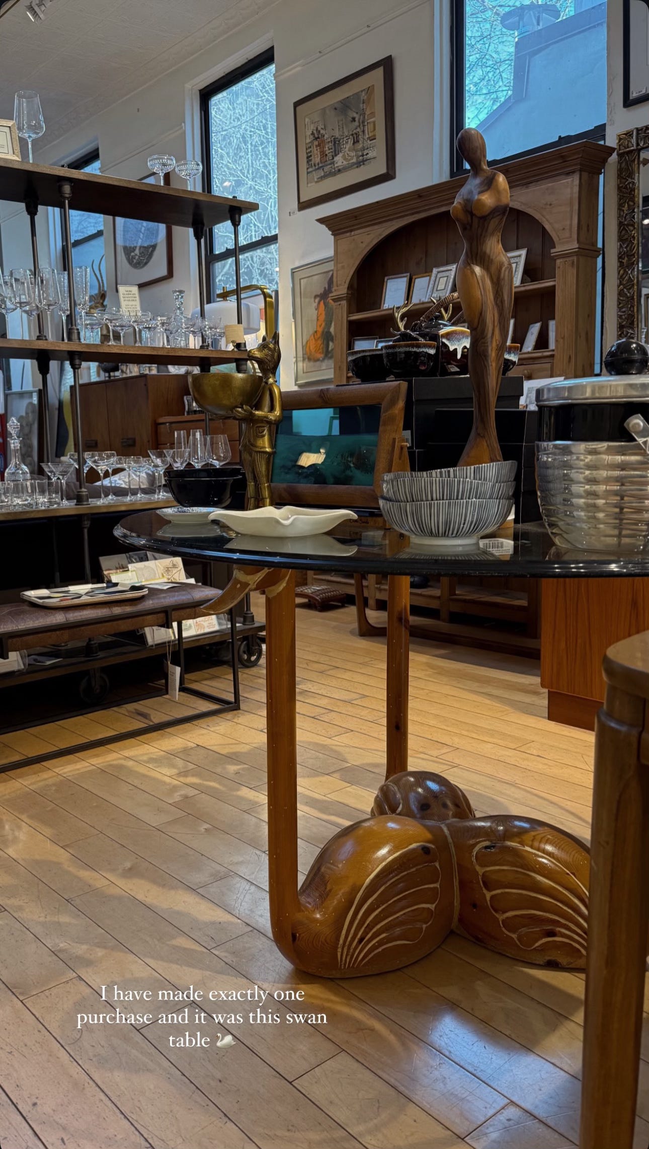 Another swan table wound up being the heaviest thing I’ve ever purchased (another Facebook Marketplace find, listed under “glass table,” with no mentions of the swans, and later sold to the Alice & Olivia boutique in New York).